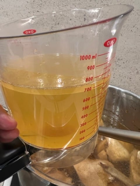 - Leftover stock liquid from the bottom of the stockpot and anything squeezed out the raft in a cheesecloth