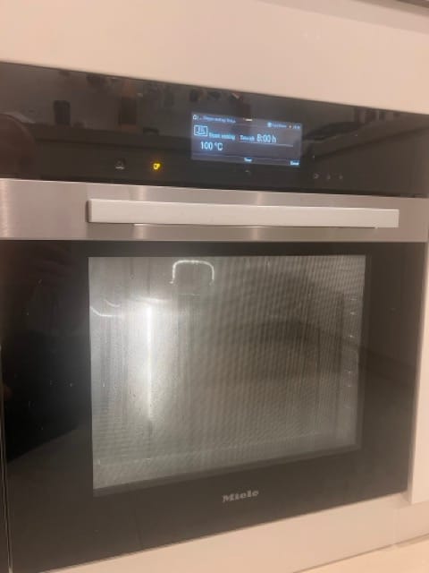 After an hour, use a gravy separator to take any fat off the top. Put the stock pot into a large double boiler (or steam oven) with its lid on, and steam it for a further 8 or more hours.