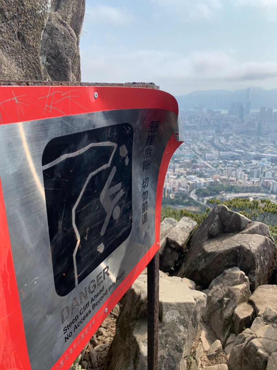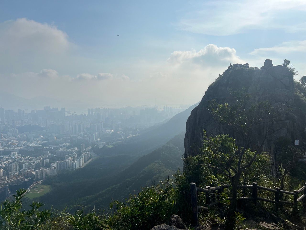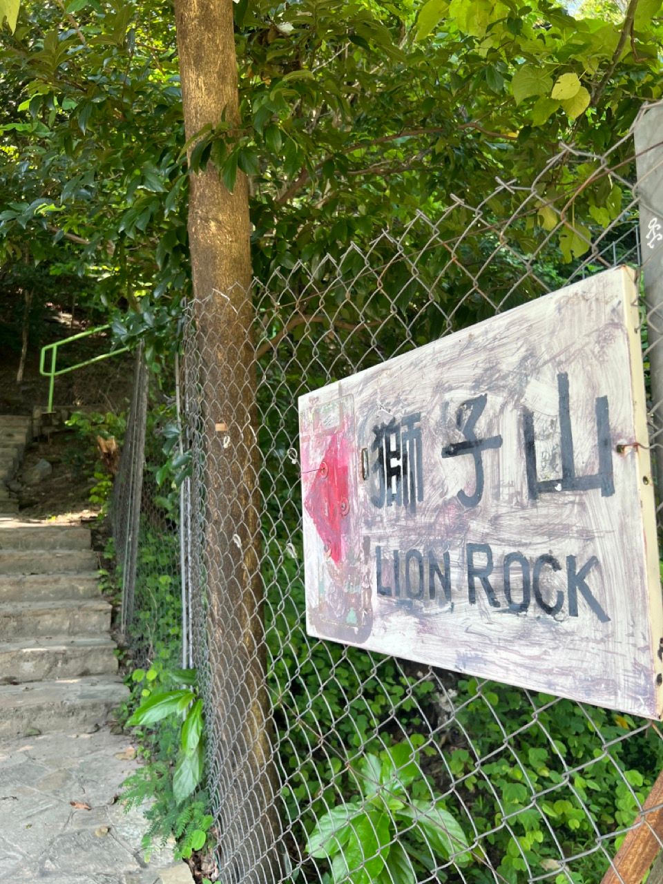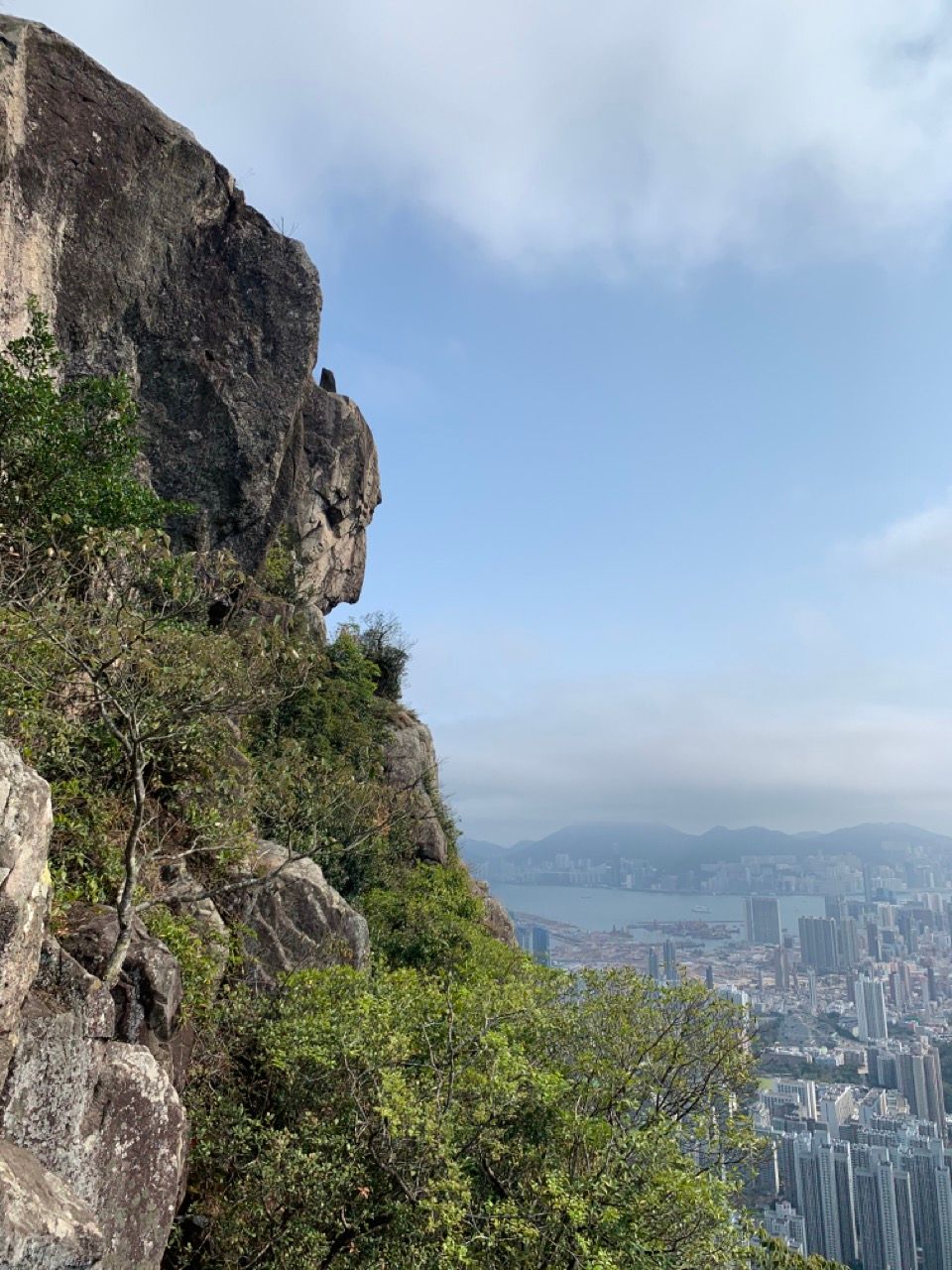 The Lion Rock is my favourite such hike. It's not too strenuous, can be accomplished in a couple of hours and has amazing vistas. The Lion Rock itself is a famous landmark in Hong Kong. It's a rock atop a peak on the Kowloon peninsula which, viewed from certain angles, has various properties of the shape of a lion such as a head, a mane, and a back. Some people view the Lion as "watching over" the city and the people from on high, and for several decades the "Lion Rock Spirit" (獅子山精神; shizi shan jingshen) described the collective hard-working, can-do, proud attitude that drove the amazing economic growth and development of the territory.