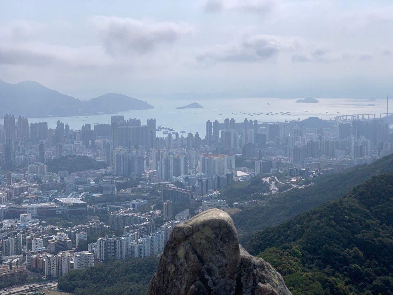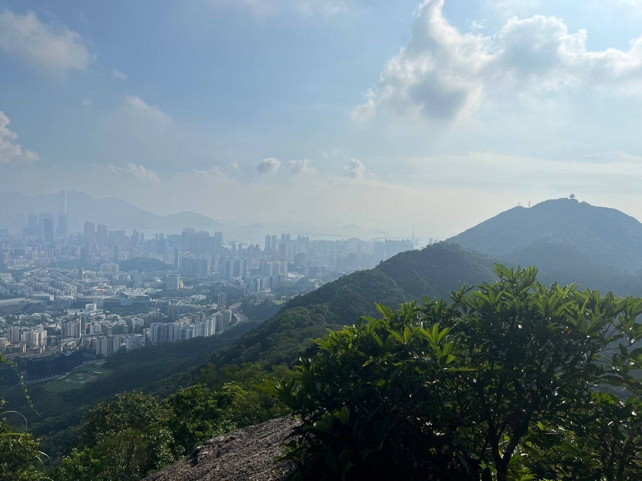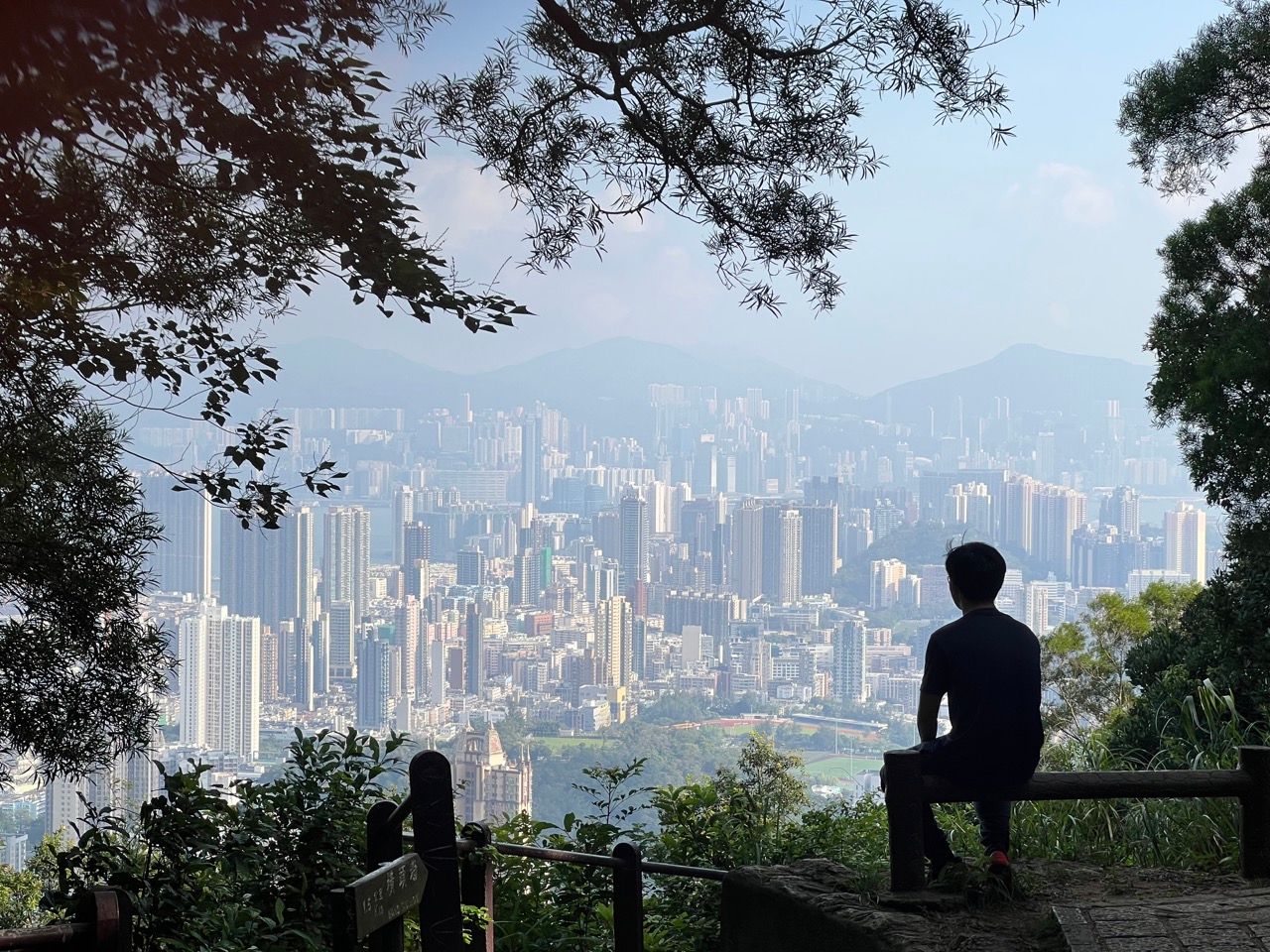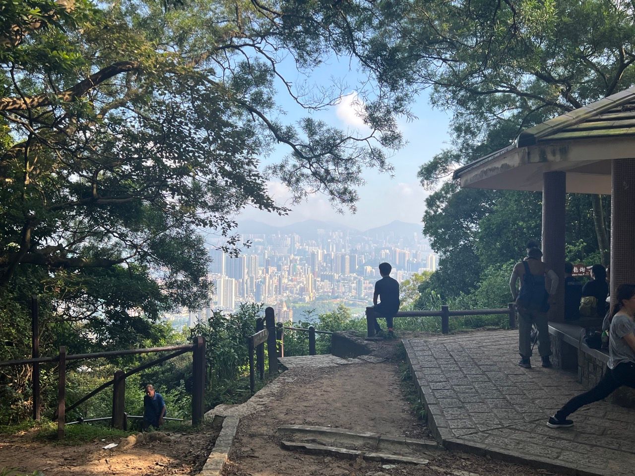 When the trail rejoins, keep on climbing and climbing. Some lower level views over the Kowloon peninsula over to Hong Kong island down below will start to emerge which can be seen by popping into some rest areas on the left hand side of the trail.